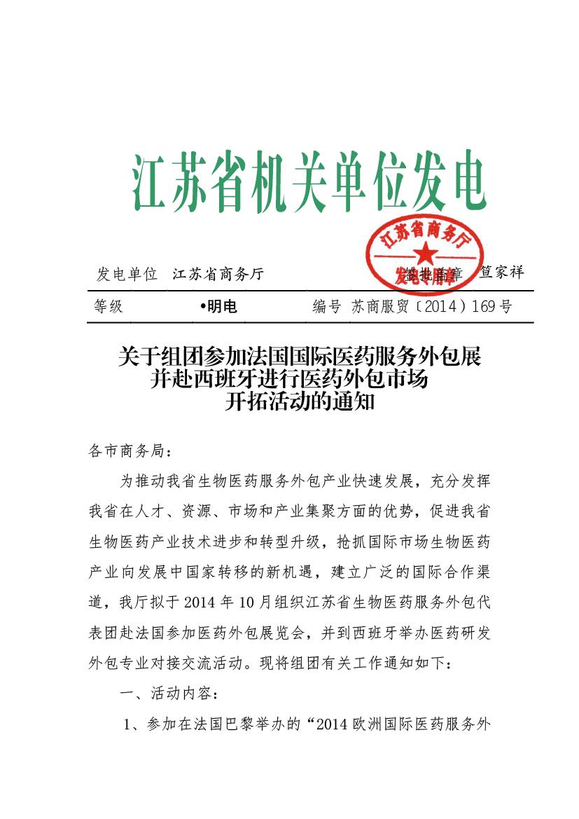 關(guān)于組團(tuán)參加法國(guó)國(guó)際醫(yī)藥服務(wù)外包展并赴西班牙進(jìn)行醫(yī)藥外包市場(chǎng)開拓活動(dòng)的通知