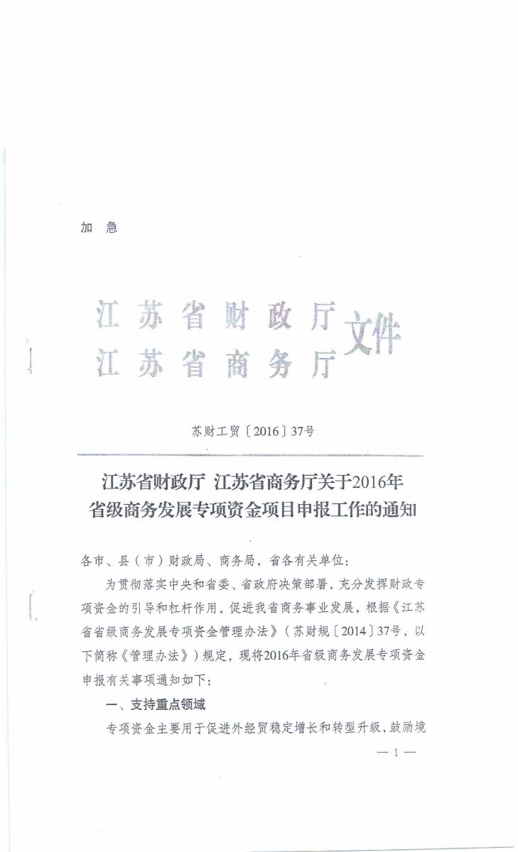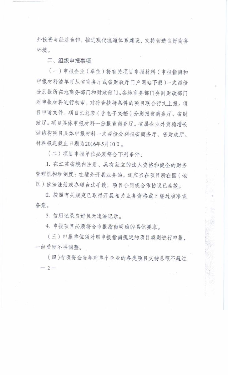 關于申報2016年省商務發(fā)展專項資金扶持項目的通知